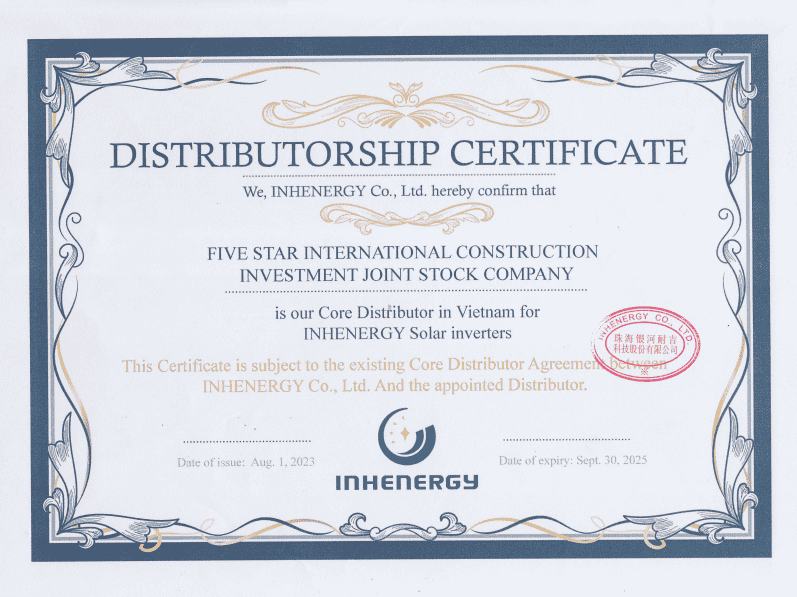 INHENERGY – DISTRIBUTORSHIP CERTIFICATE