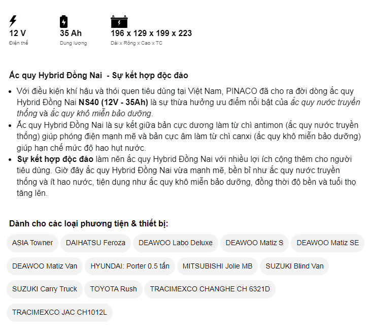Ắc quy Đồng Nai nước 12V-35Ah (NS40)