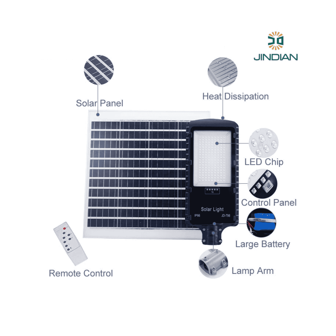 – Mã sản phẩm: JD-7300– Công suất: 300w– LED SMD 3030: 240led.– Chiếu sáng liên tục: 10-12h đồng hồ– Thân đèn: Nhôm sơn tĩnh điện, có rãnh tản nhiệt.– Mức độ bảo vệ: IP67– Kích thước đèn: 380 x 340 x 45mm– Kích thước tấm pin: 770 x 360 x 17cm– Công suất tấm pin năng lượng: 6v/45w. Tuổi thọ 10-12 năm– Dung lượng pin: 39.000maH.– Thời gian sạc: 4-6h nắng tiêu chuẩn– Bảo hành: 2 năm |