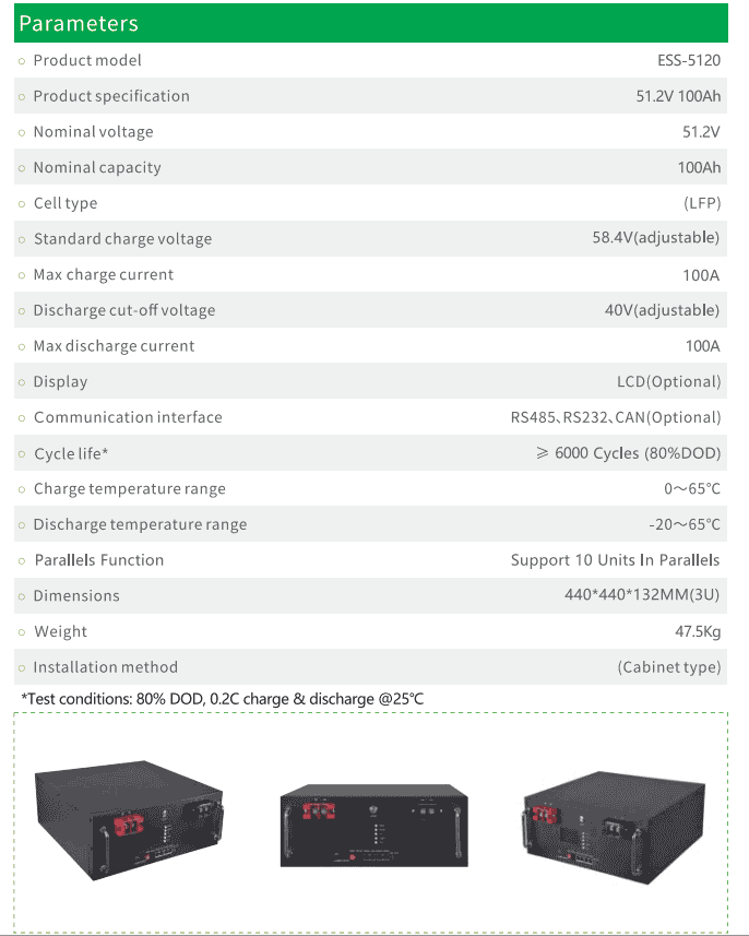 Thông số kỹ thuật Pin lưu trữ Lithium Ecopower 51.2V-100Ah (5.12KW)