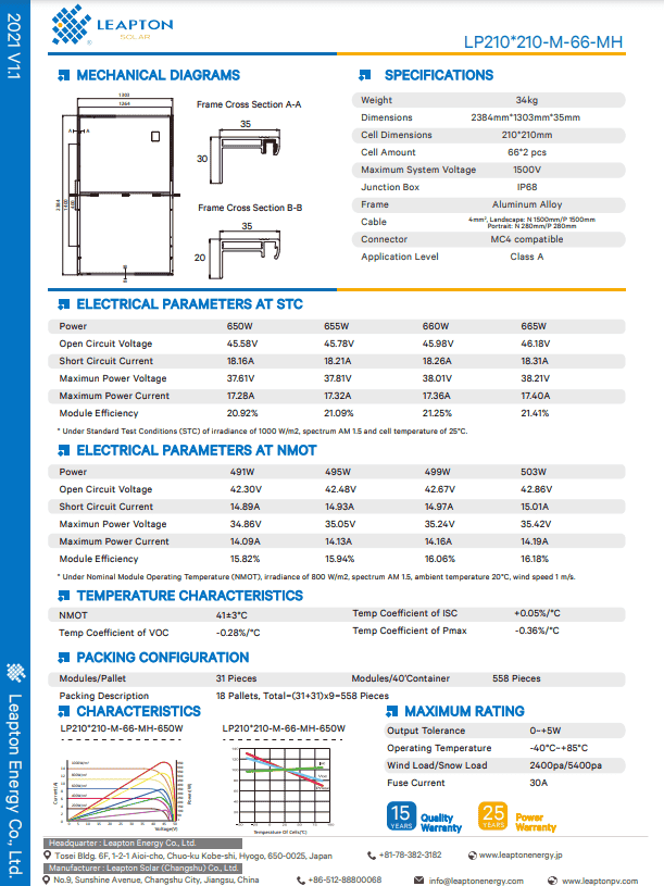 Tấm pin năng lượng mặt trời Leapton Solar 650W