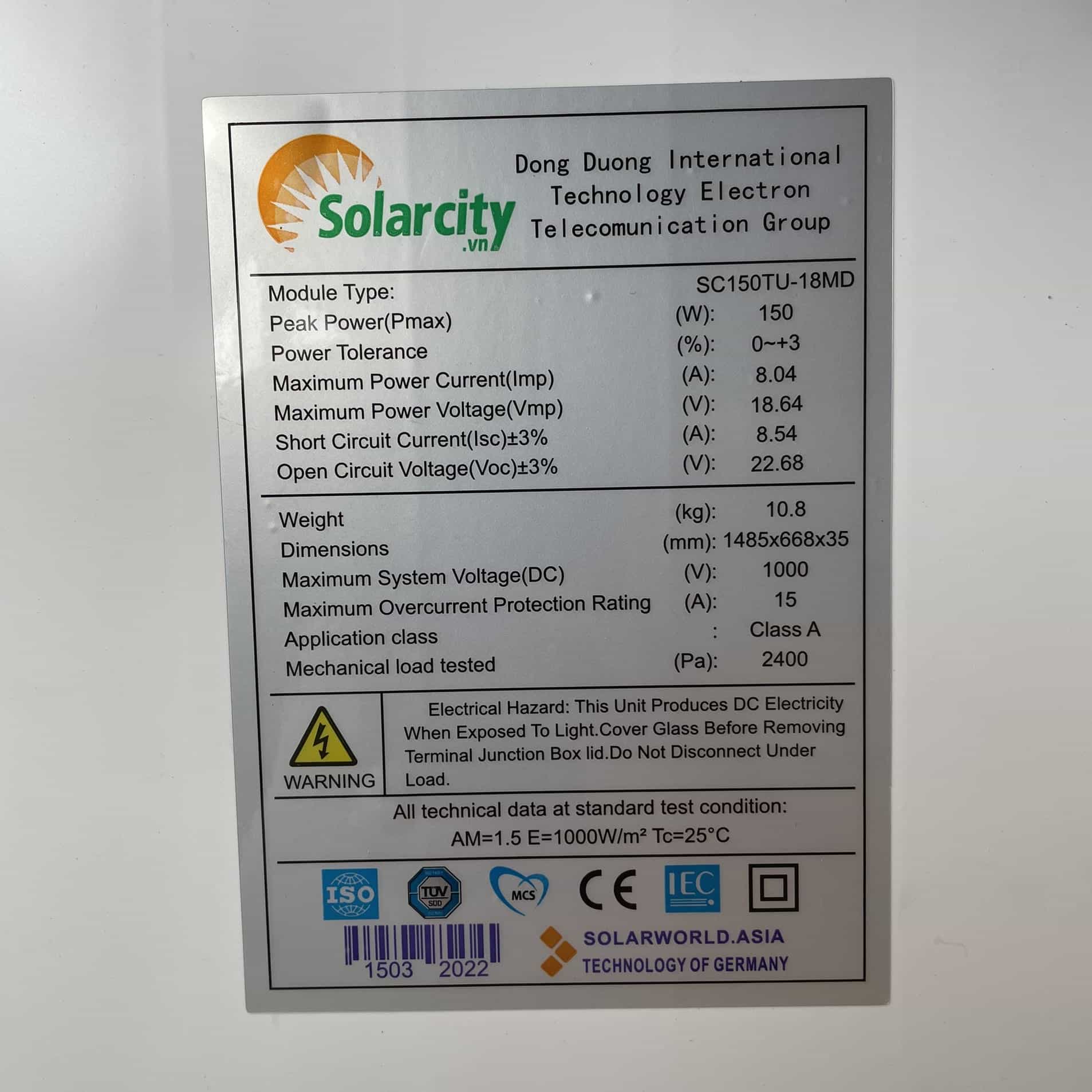 * Thông số kỹ thuật tấm PIN NĂNG LƯỢNG MẶT TRỜI MONO 150W